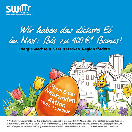 Als Ihr regionaler, zuverlässiger Energieversorger haben wir ein spezielles Frühlingsangebot für Sie - unser Bonus Osterei!