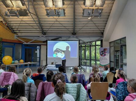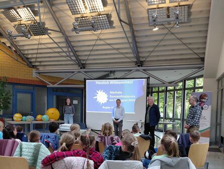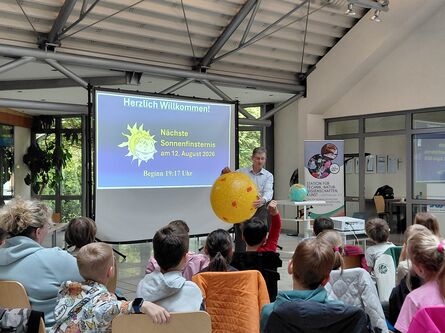 Unter dem Titel „Warum wird der Tag zur Nacht?” erwartete die Kinder am 24. April 2026 eine spannende Reise in die Welt der Astronomie. Anna Dunkl und Uwe Lemmer vom Deutschen Zentrum für Astrophysik (DZA) erklärten ihnen das Phänomen der Sonnenfinsternis auf kindgerechte und wissenschaftlich fundierte Weise.
